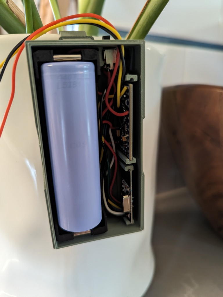 After some research, I decided to order some RT9167 3.3v regulators, as they looked like they would be pretty efficient and would be a direct drop-in replacement for the original regulator on the 3.3 Pro Mini. With the addition of this regulator, I was able to swap over to using a single 21700 cell and 3d printed an enclosure for it. I have yet to run a full battery out, but so far it looks to be working well!